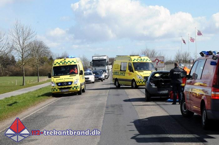 Førerne af begge biler blev bragt til undersøgelse på Kolding sygehus.