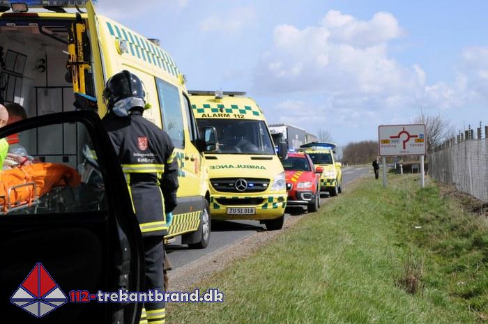 2 ambulancer og lægebilen fra Kolding blev sammen med indsatslederen og politiet sendt til stedet sammen med brandfolkene, da redningsmandskabet ankom til stedet var personerne selv kommet ud af bilerne så der blev ikke brug for frigøringsværktøjet.