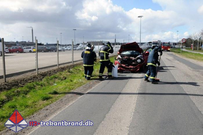Koldingvej var spærret imens redningsarbejdet stod på, begge biler fik en del materielle skader, de blev af brandfolkene skubbet ind til siden, inden der igen blev åbnet op for trafikken.