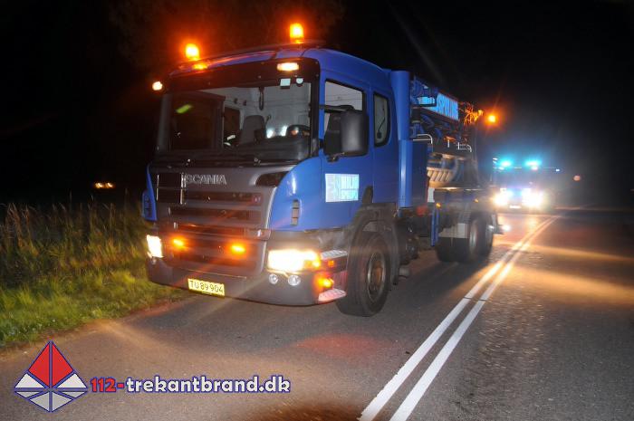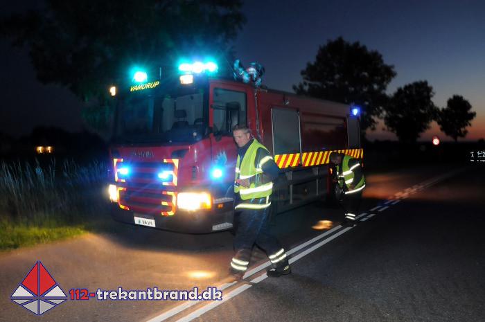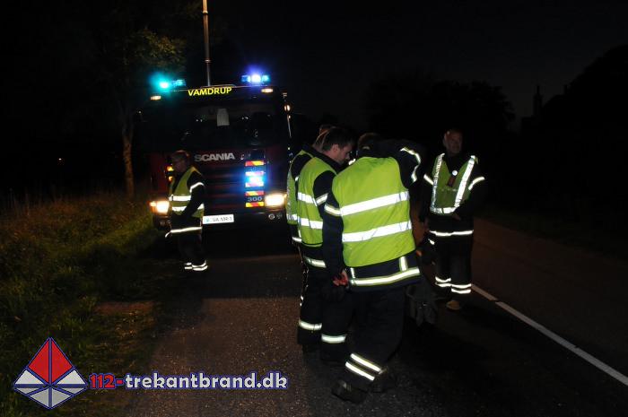 Blev søndag aften klokken 20.42, kaldt til Vamdrupvej ved Drenderup, hvor der var sket en forurening af vejbanen.