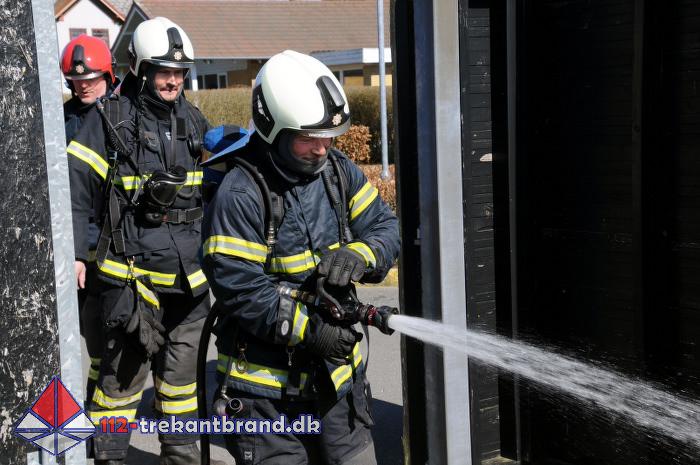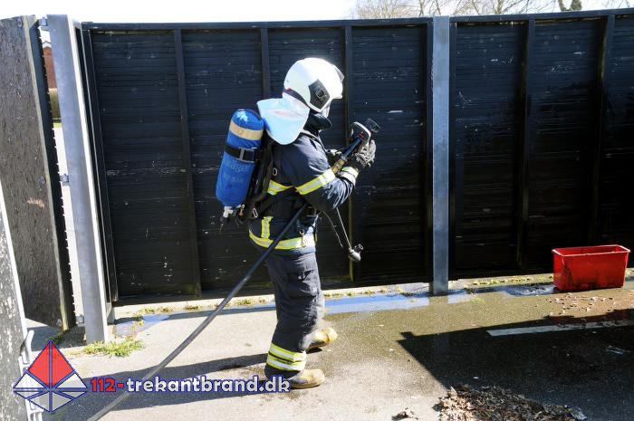 Skraldespanden stod ved et træskur og der var kraftig røgudvikling i det fri.