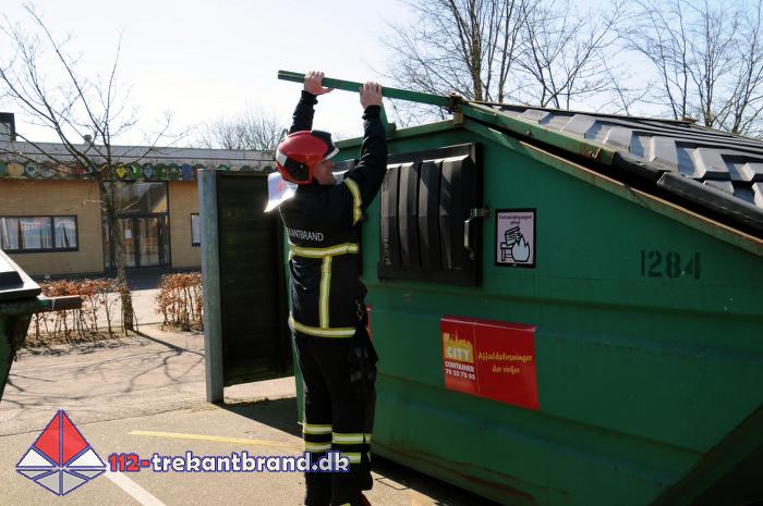 TrekantBrand, st. Vamdrup måtte på en hurtig tur tirsdag klokken 14.04, da der indløb alarm om ild i en skraldespand ved Vamdrup Skole Øst i Østergade i Vamdrup.