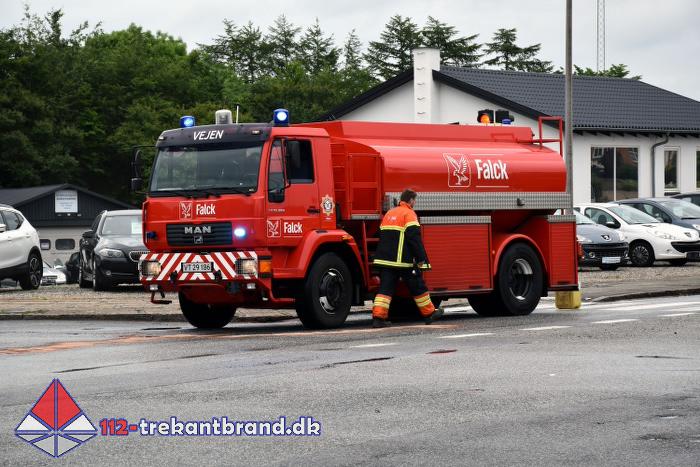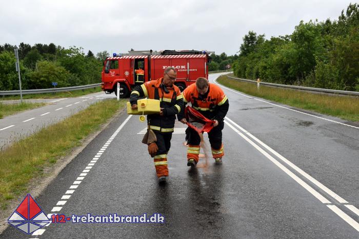 En mindre forurening fik fredag klokken 11.18 alarmklokkerne til at ringe på brandstationen hos TrekantBrand i Vejen.