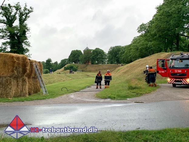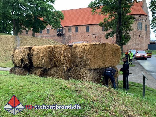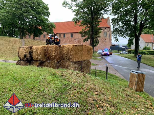 Da brandfolkene ankom til stedet ulmede det lidt fra de halmballer der var på stedet.