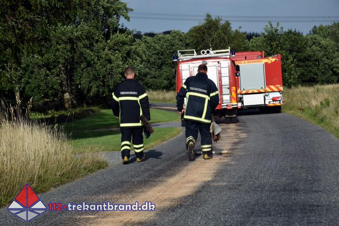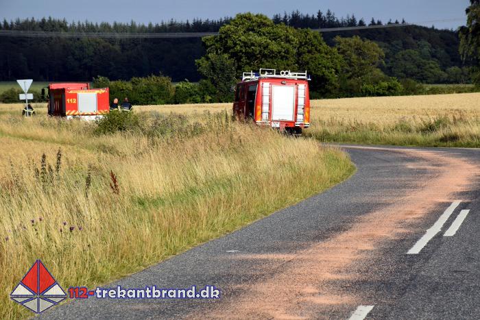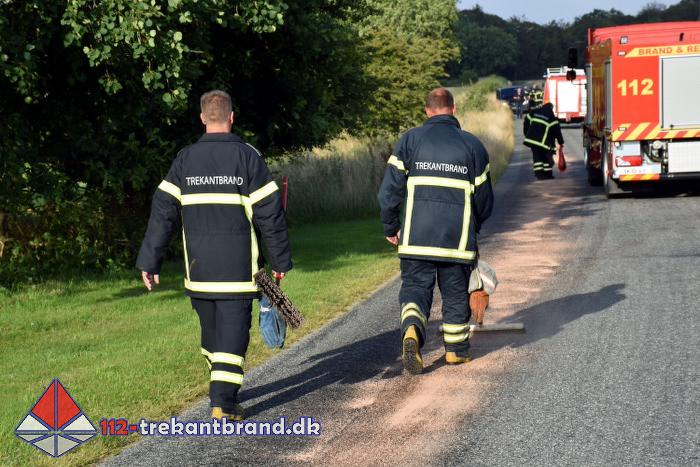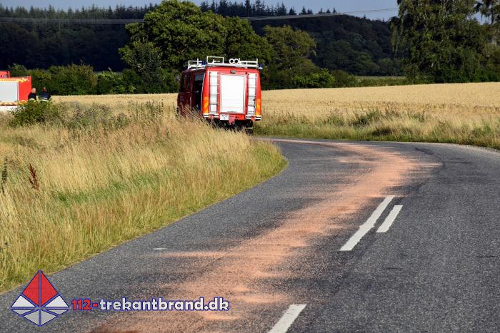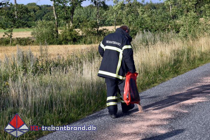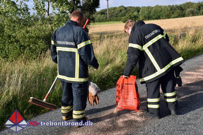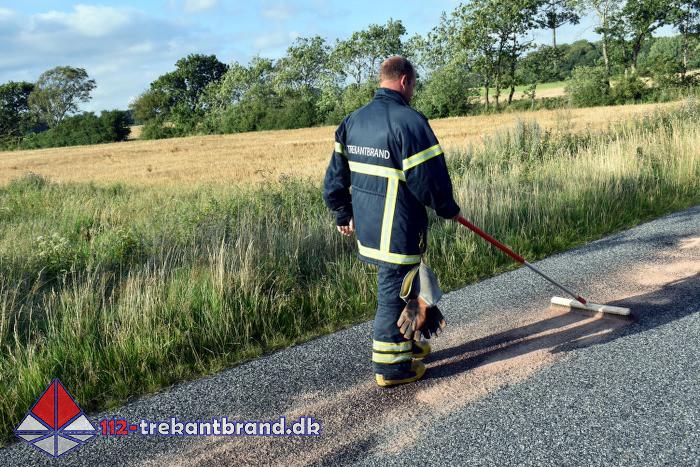 Brandmændene fra TrekantBrand blev kaldt en tur til Skodborgskov hvor der på Grejsensvej fra skoven og frem til Haderslevvej var et spild af hydraulik olie på vejbanen.