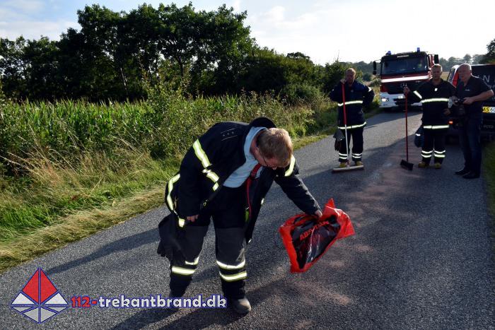 Det blev til en længere gå-tur for brandfolkene med “ kattegrus “ og koste.