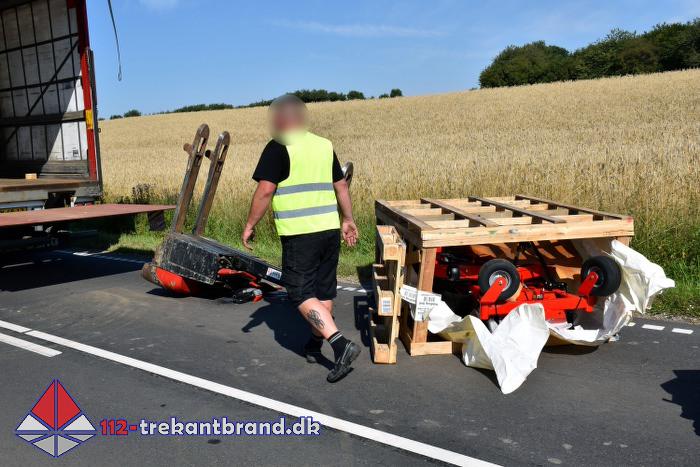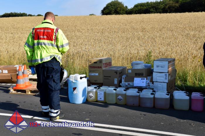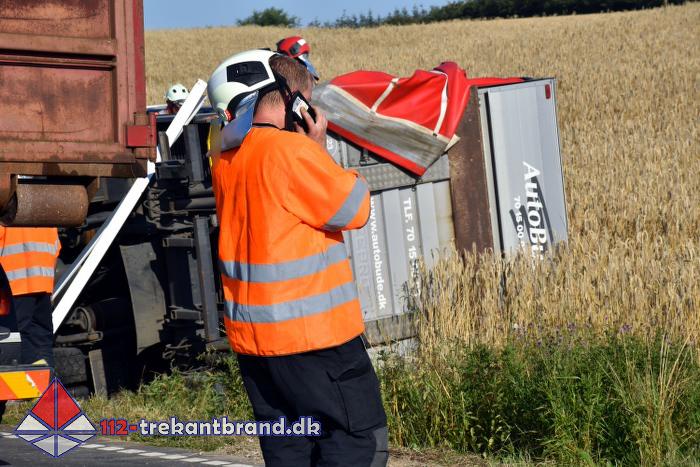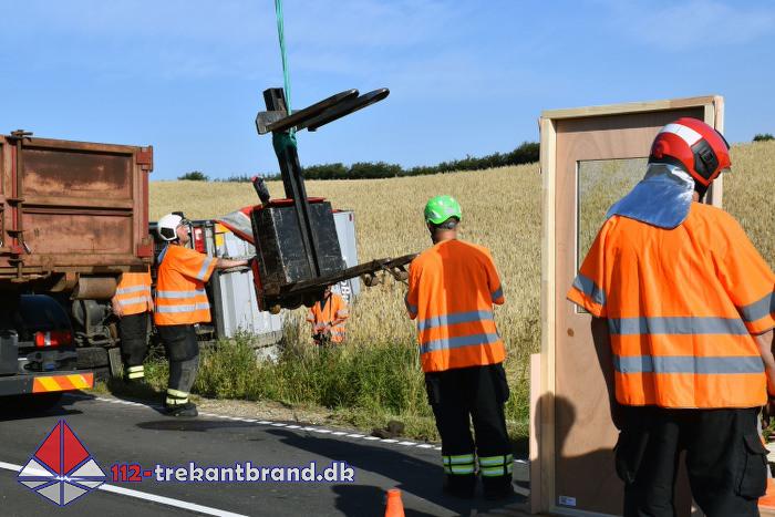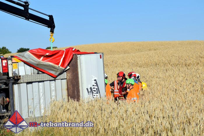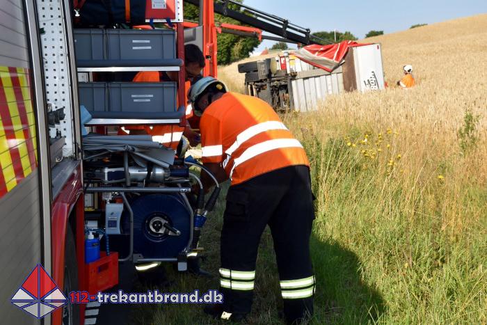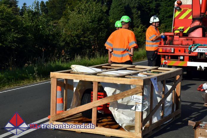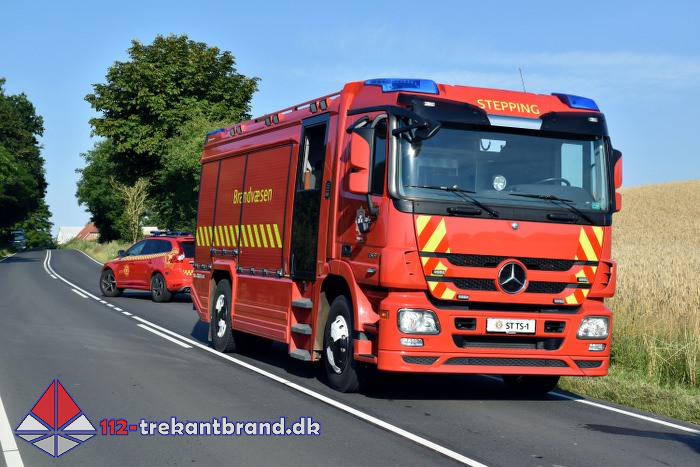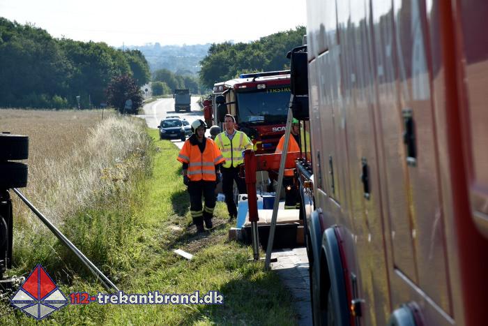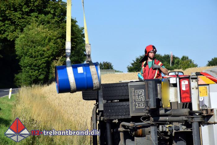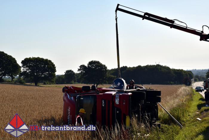 TrekantBrand fra station Tyrstrup var hurtigt fremme på stedet og klokken 08:09 blev station Stepping kaldt til assistance, da lastbilen skulle tømmes.