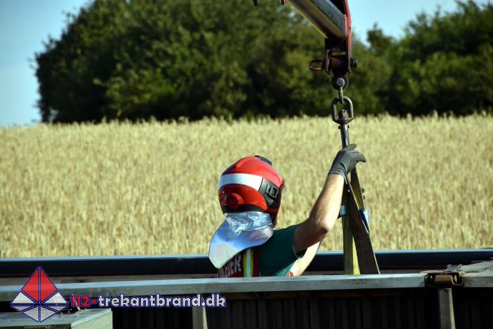 Det samme gjorde en bil med fastmonteret kran fra TrekantBrand i Fredericia.