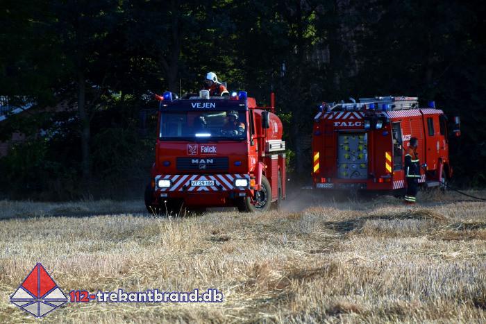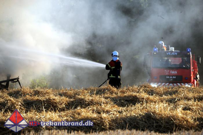 TrekantBrand, station Vejen, var på pletten med vandslangerne og fik begrænset branden på marken.