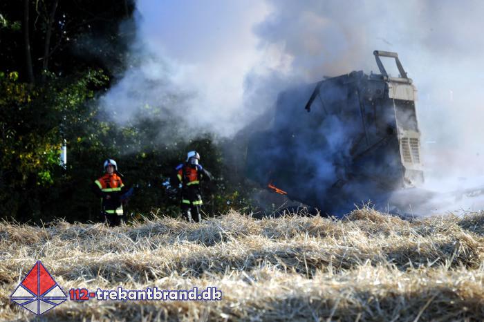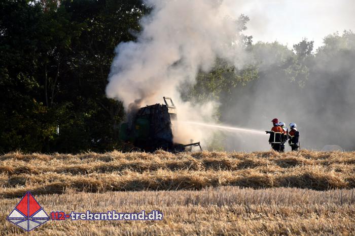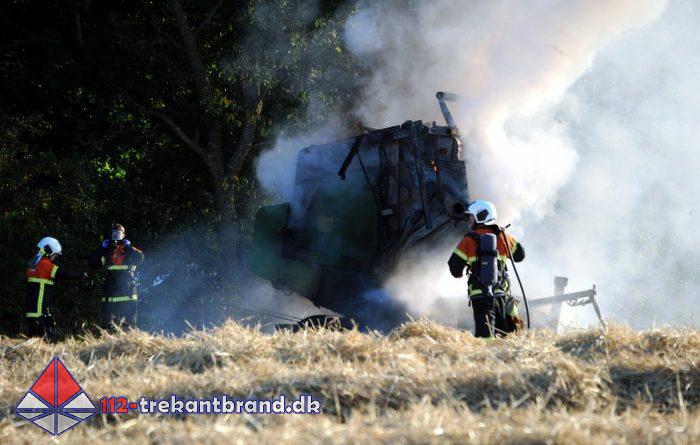 Her udbrændte en halmpresser og lidt af halmen på marken.