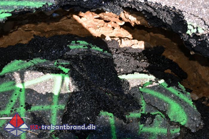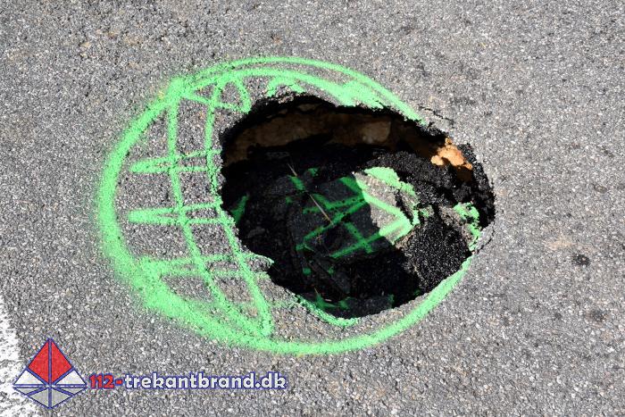 Hullet skønnedes til at være ca. 2 x 1 meter under det sunkne asfalt.