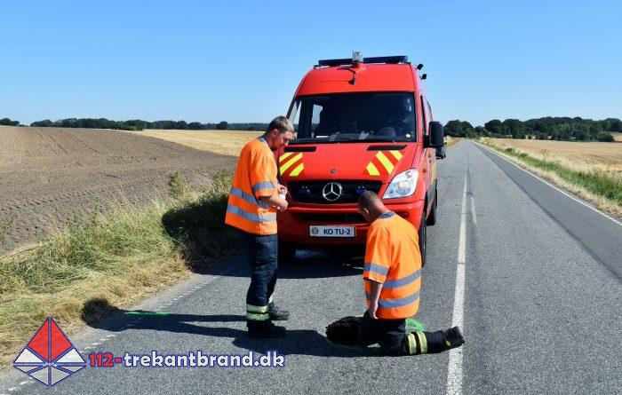 Indsatsleder, folk fra beredskabet samt en lastbil med jernplader ankom til stedet.