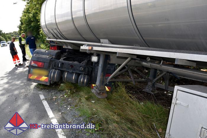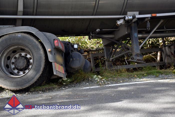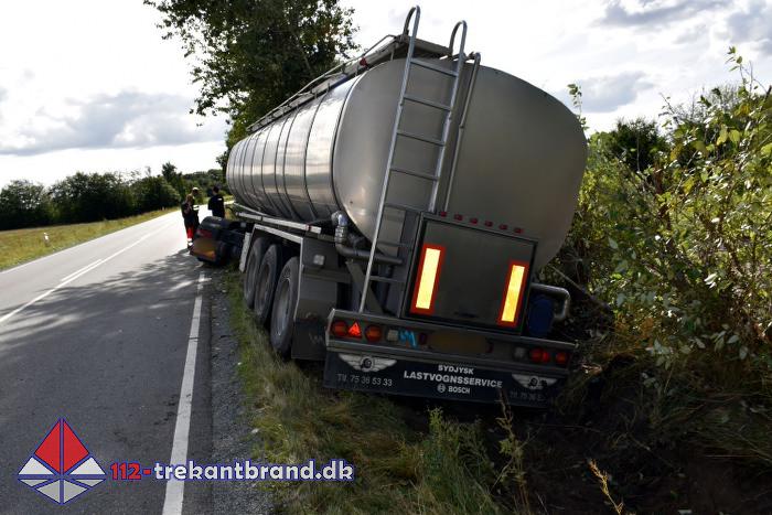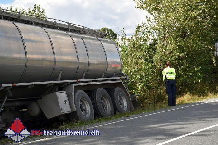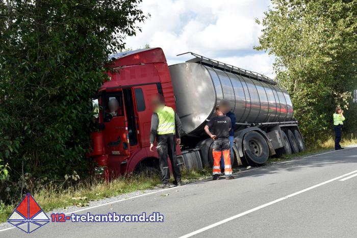 En tankvogn kørte torsdag midt på eftermiddagen en tur i grøften da den kom kørende på Kongeåvej nær Vejen.
