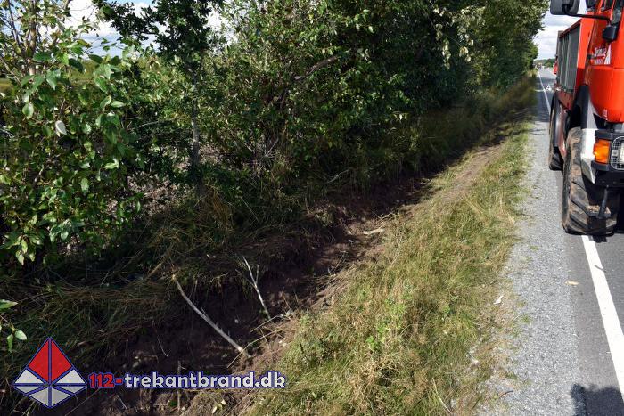 På vej mod rundkørslen ved Skodborghus kørte den af, for os, ukendte årsager en tur ned i grøften.