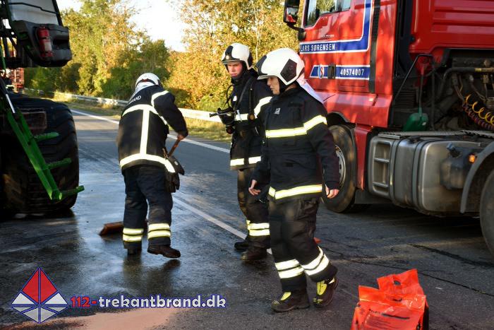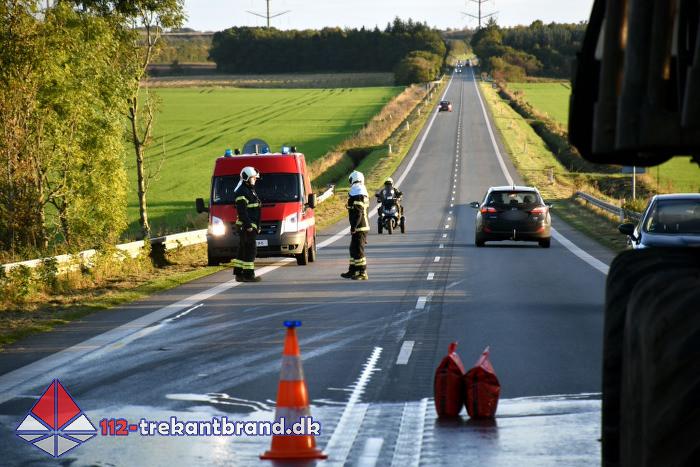 Det skabte en del trafikale problemer på den befærdede hovedvej, LV rute 25, ved Øster Lindet da der tirsdag eftermiddag klokken 16.51 udbrød brand i et kørende landbrugsredskab.