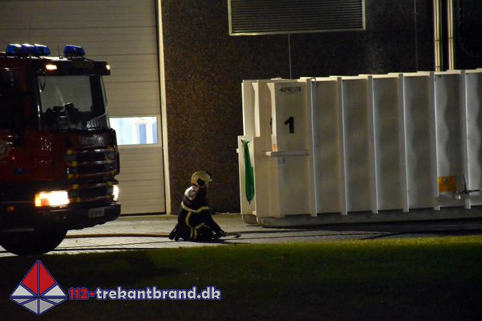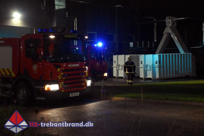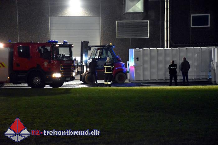 Meldingen lød på Ild i fritstående container på Kærmindevej i Vamdrups industrikvarter.