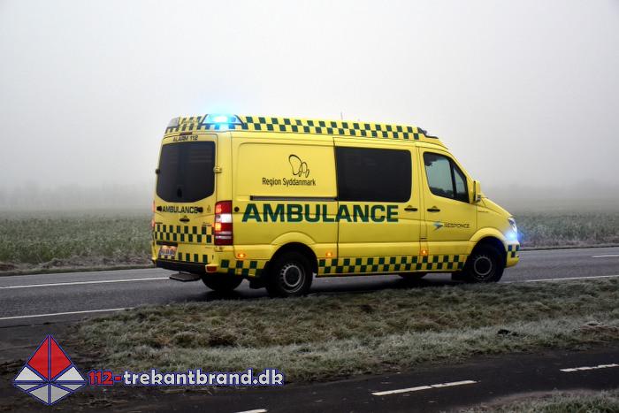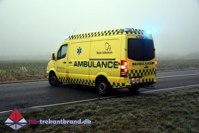 Akutbil, Ambulance og Politi arbejdede på stedet.