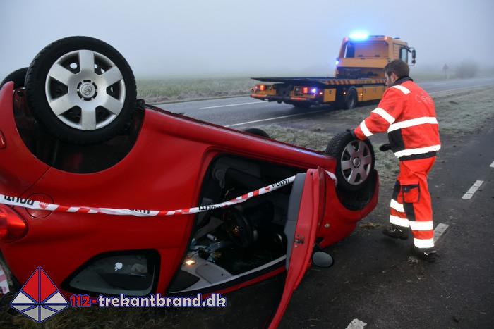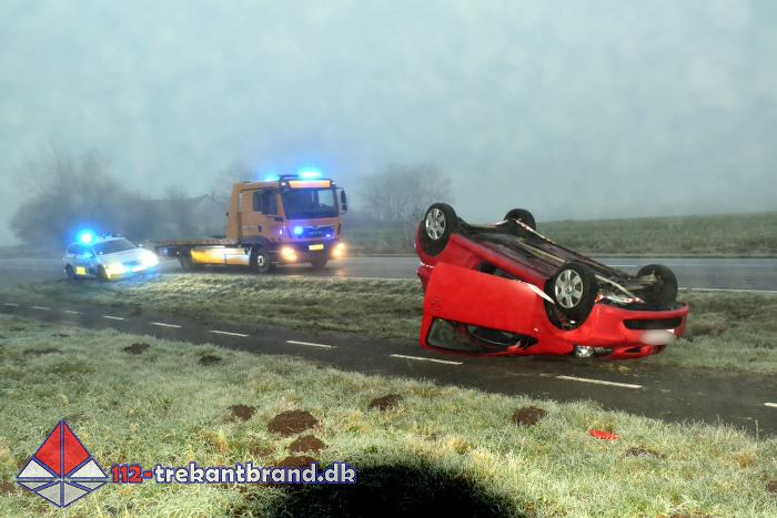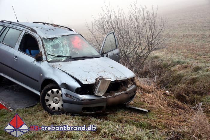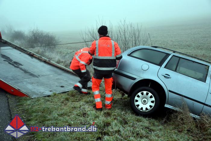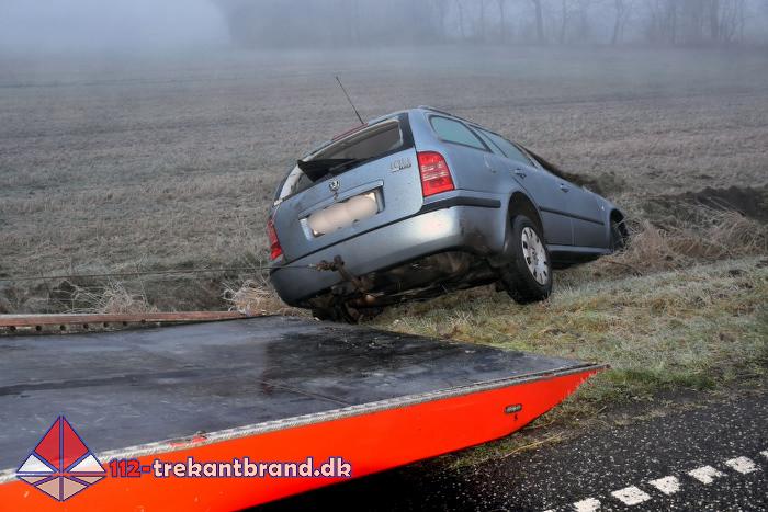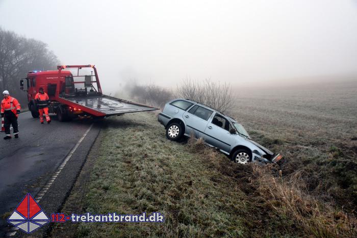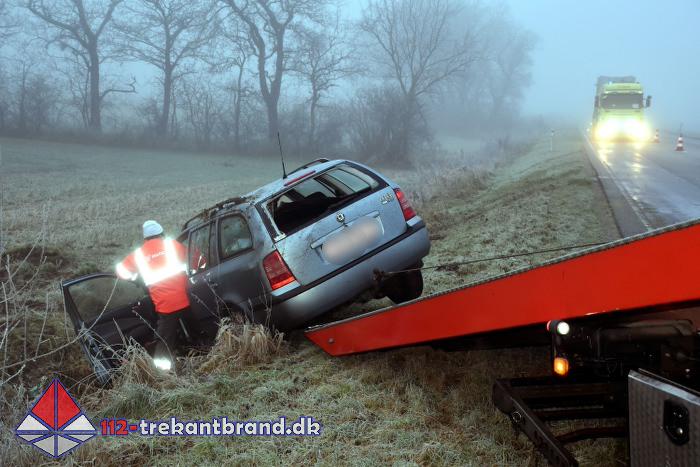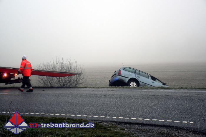 Lidt længere fremme, få hundrede meter, var en anden bilist en tur i grøften.