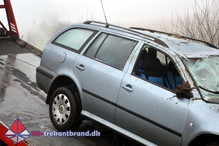 Kvinden slap med et chock og lidt knubs men kom dog en tur på sygehuset.