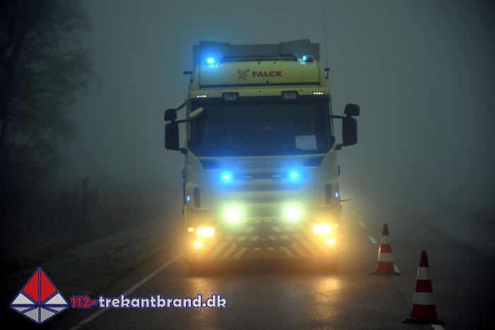 Ved uheldet, der skete lige over for rastepladsen ved Hjarup, kom ingen tilskade.