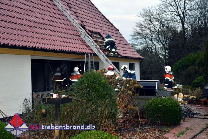 Der var opstået ild omkring skorstenen og ilden spredte sig hurtigt til taget på selve stuehuset.