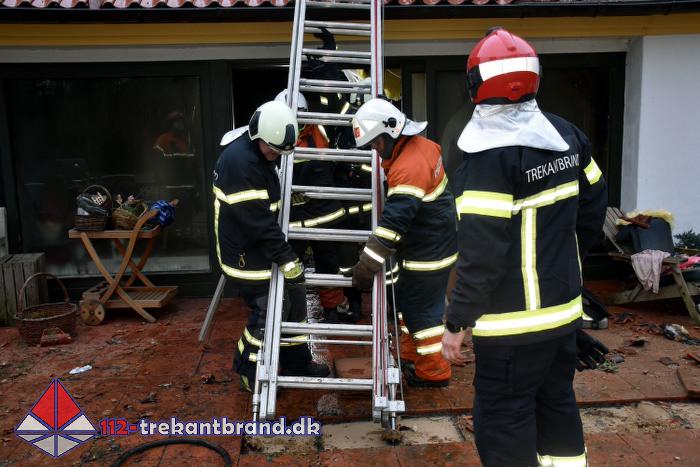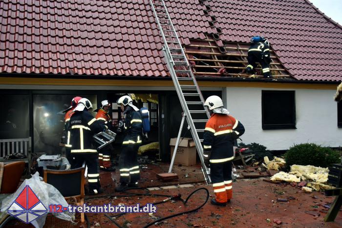 Brandmandskab fra TrekantBrands stationer i Egtved og Lunderskov blev sendt afsted og fik kontrol over branden.
