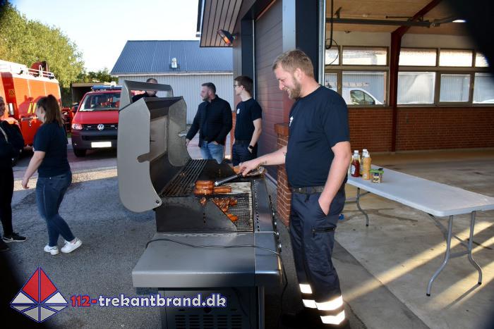 Aftenen sluttede på behørig vis — nemlig med pølser på grillen.!