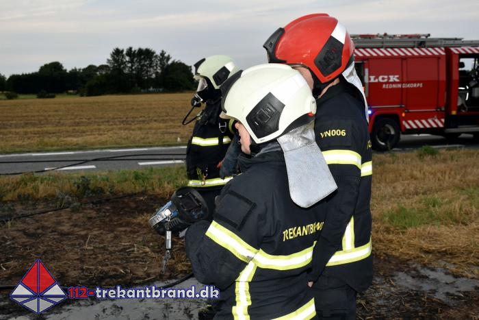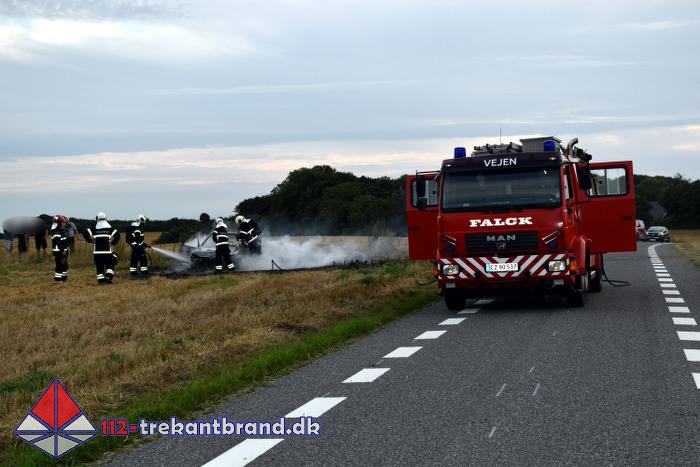 Der skete ikke personskade ved uheldet og TrekantBrand fra stationen i Vejen fik hurtigt slukket branden der kunne ses viden om.