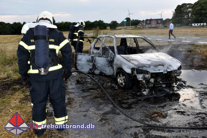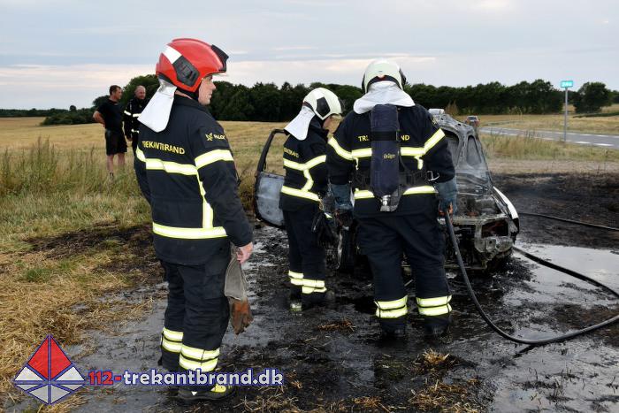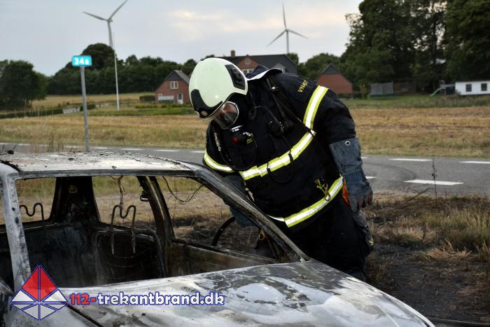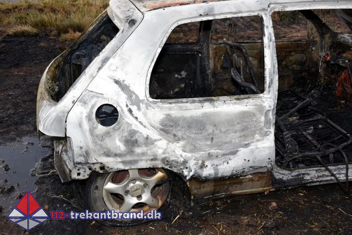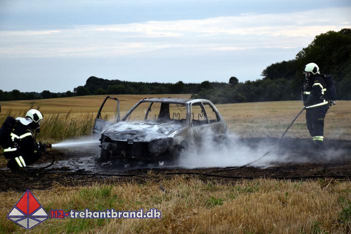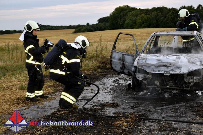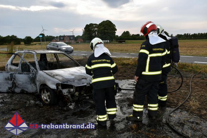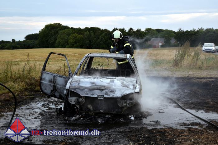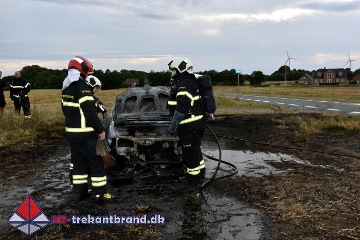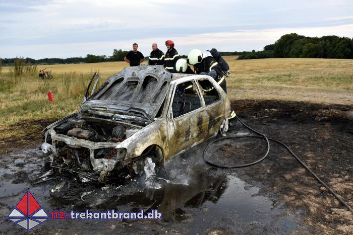 En mindre personbil brugt til markræs udbrændte tirsdag aften klokken 19.12 på Gamstvej nær Vejen.