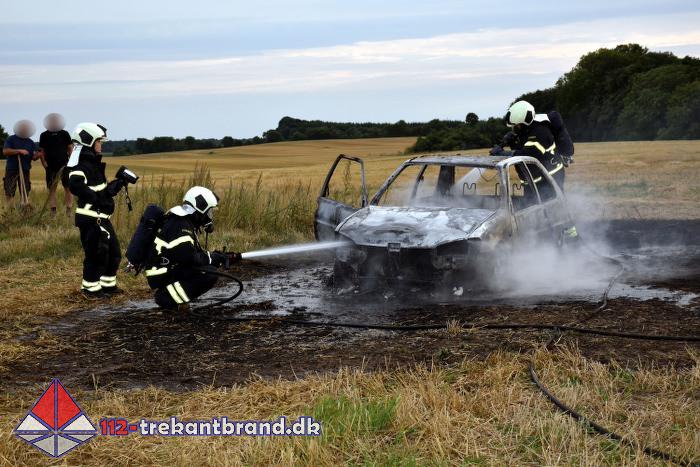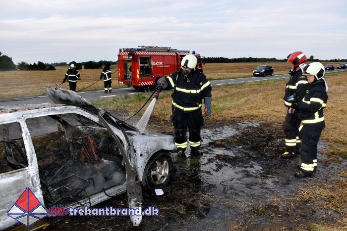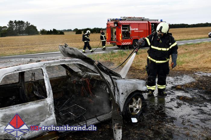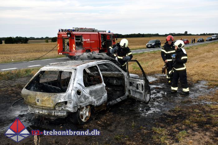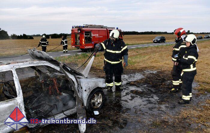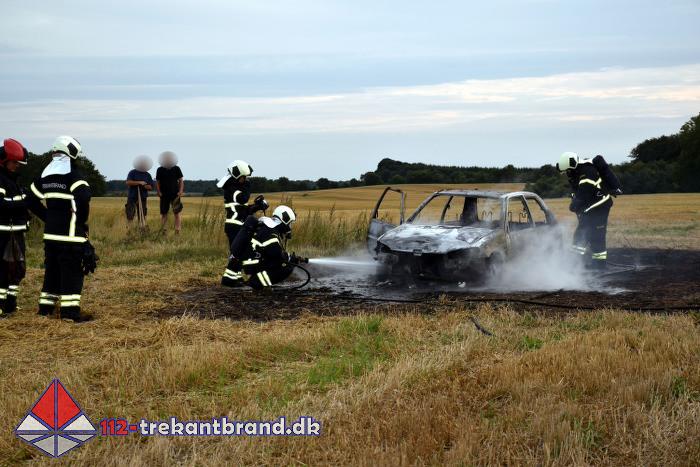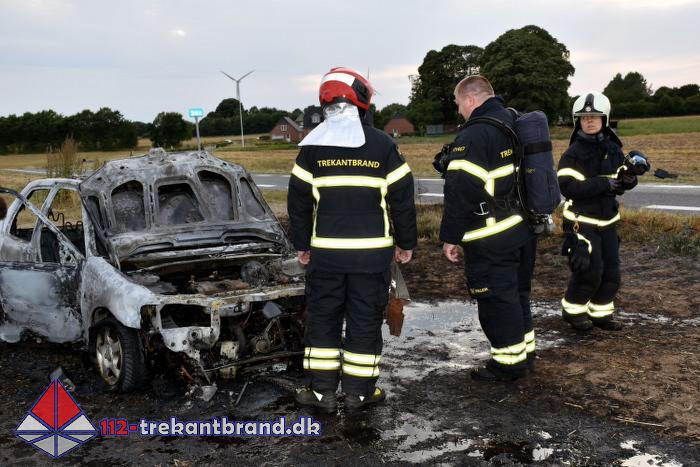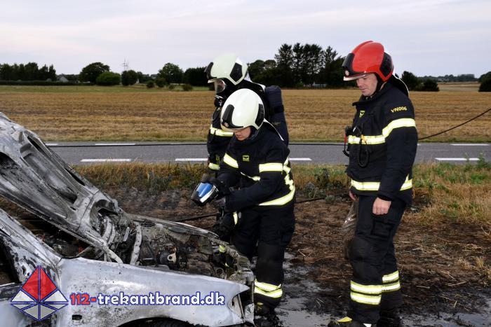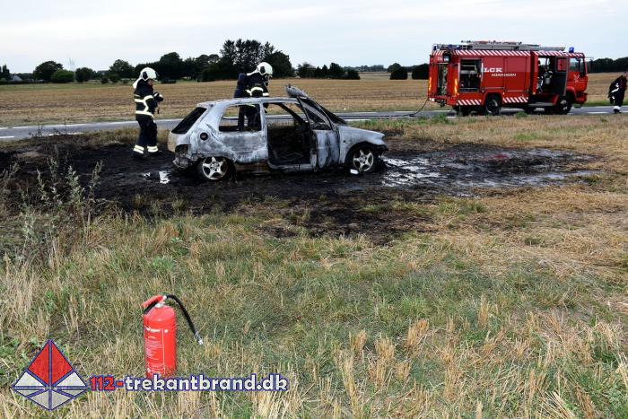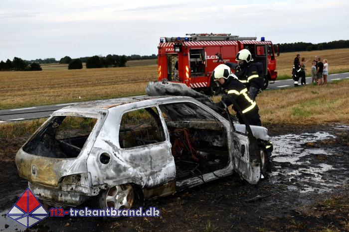 En mindre personbil brugt til markræs udbrændte tirsdag aften klokken 19.12 på Gamstvej nær Vejen.