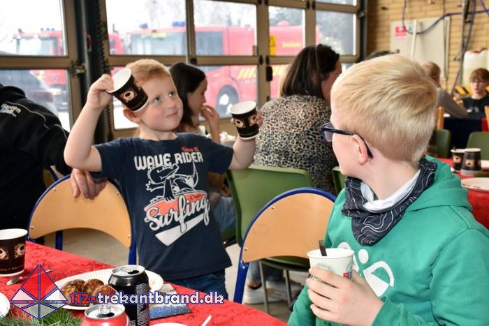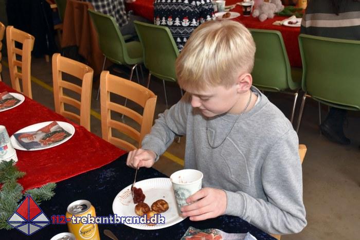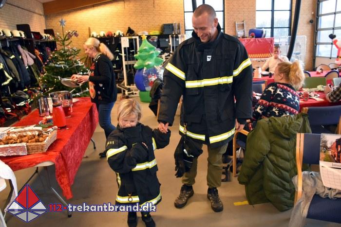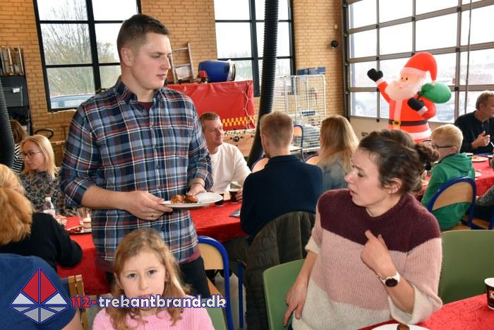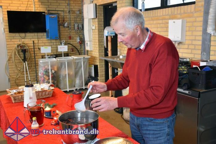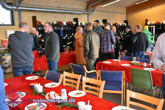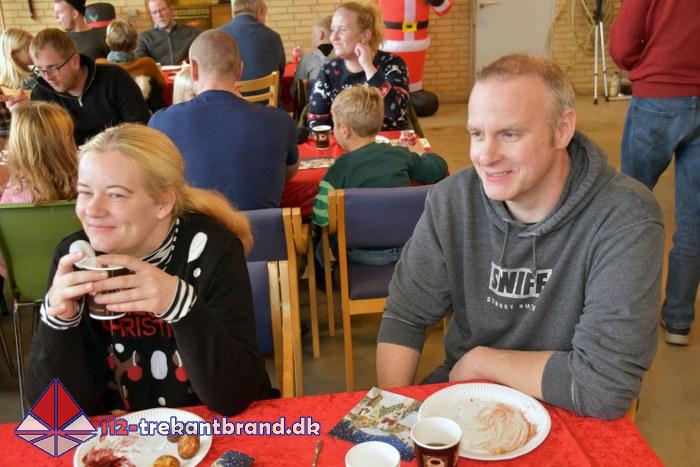 Der blev serveret julegløgg og æbleskiver, kaffe med mere medens børnene fik en køretur i brandbilerne.