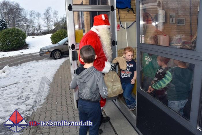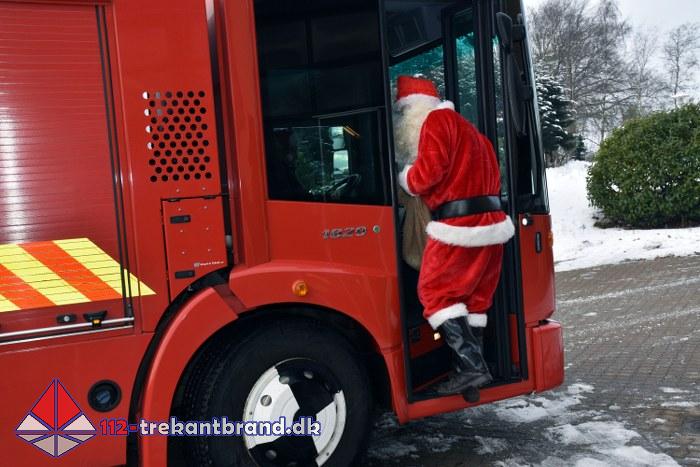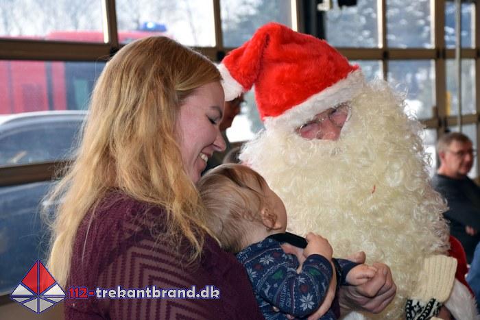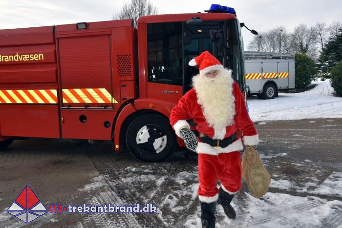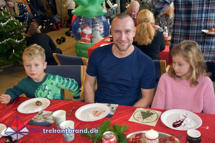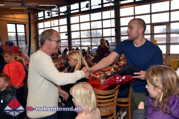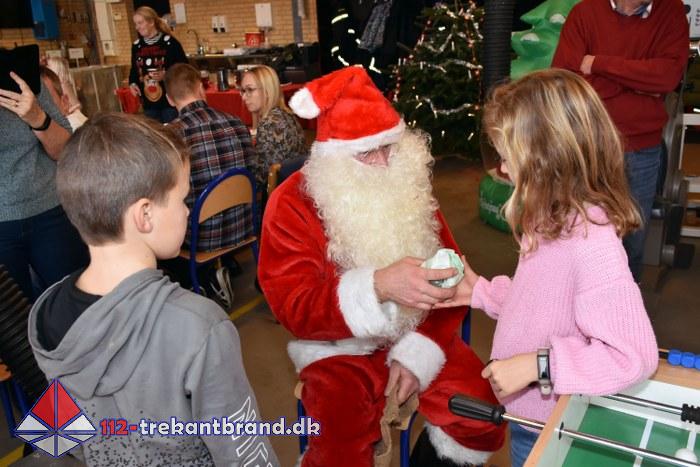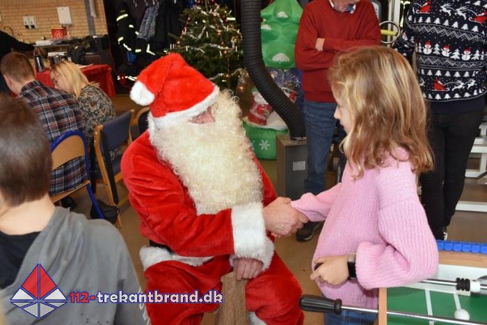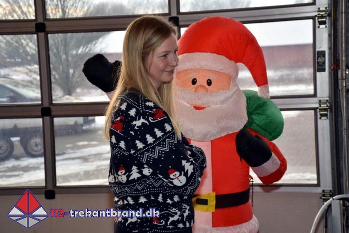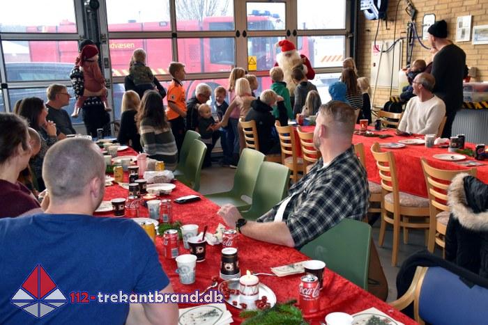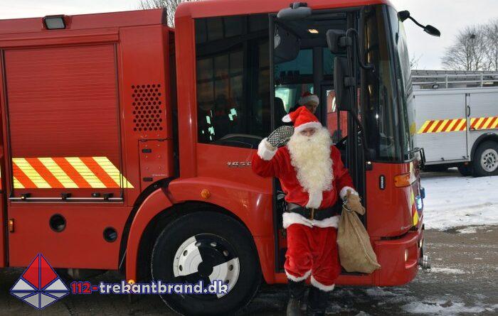 Det var de altid friske brandmænd m/k og deres familier der var samlet og det var så utrolig heldigt at julemanden kunne afse tid til at kigge indenfor og ønske alle en god jul — og så havde han endda godteposer med !