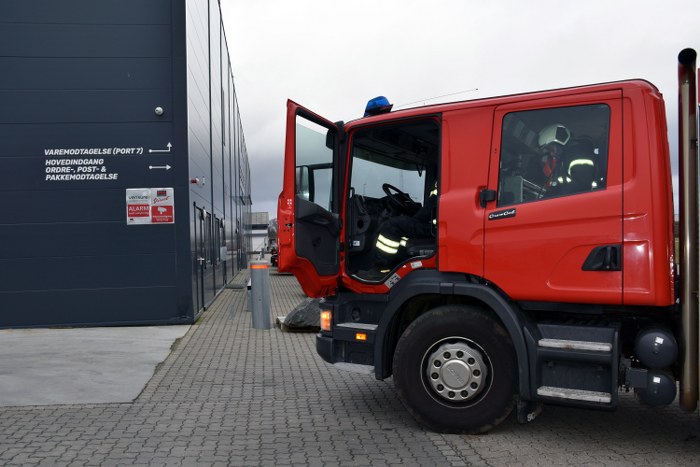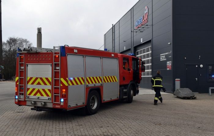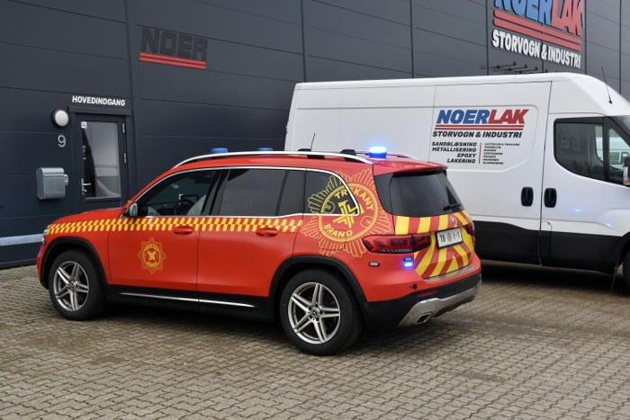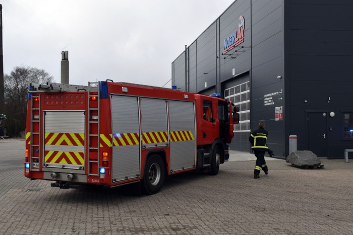 Alarmen kom fra Carsten Noer Storvognslakering på Østermarksvej.