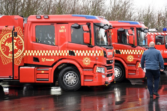 De to helt nye autosprøjter er to af de elleve sprøjter, som TrekantBrand har indkøbt i forbindelse med en politisk vedtaget plan for en udskiftning og modernisering af beredskabets køretøjer.