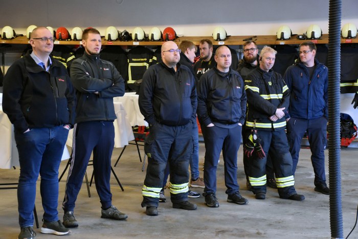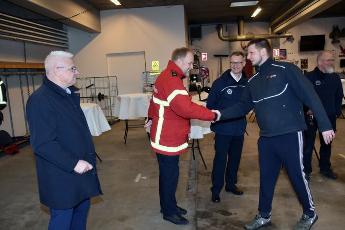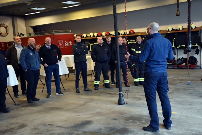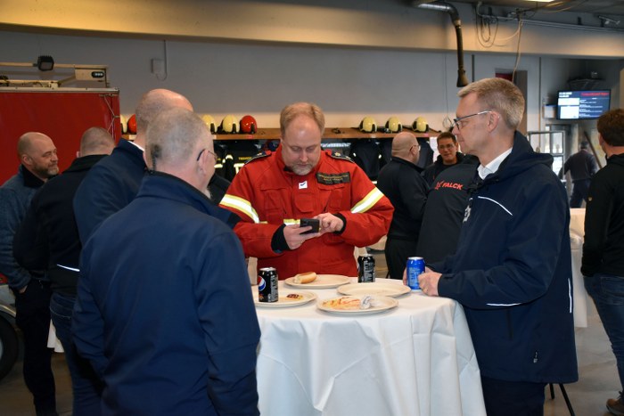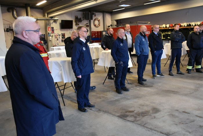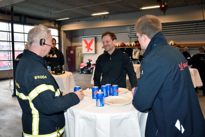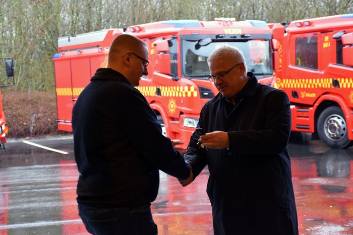 Ved en mindre sammenkomst på brandstationen i Vejen blev overdragelsen markeret på behørig vis.