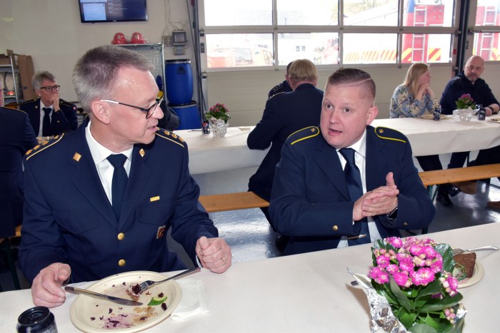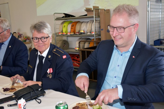 Lykønskningerne var mange og der blev holdt taler og råbt hurra for brandvæsenet der nu hedder TrekantBrand, station Vamdrup. Borgmester, byrådsmedlemmer, Regionsrådsmedlem, repræsentant for Politiet samt tidligere Brandinspektør i Vamdrup Ole Laursen havde fundet vej til brandstationen.