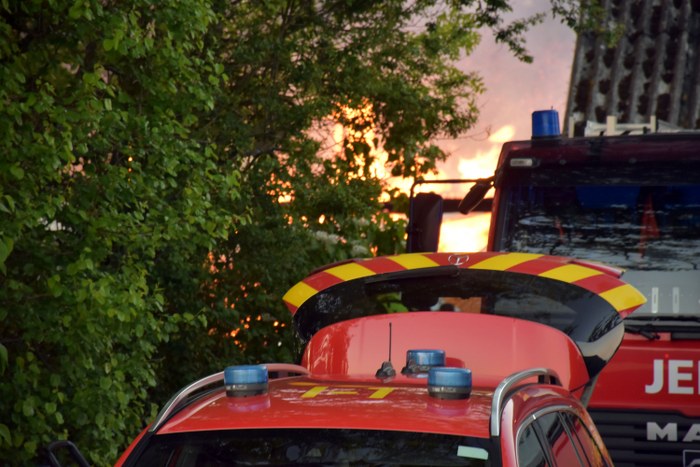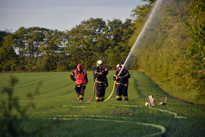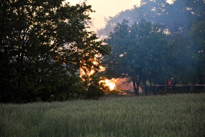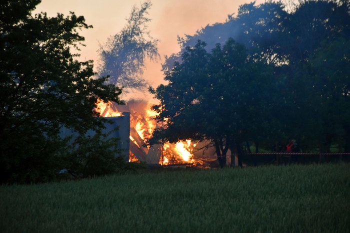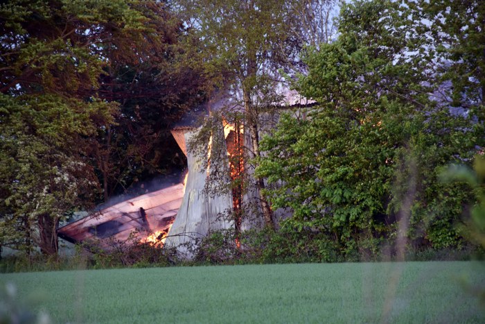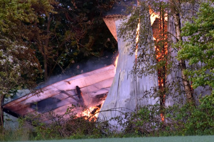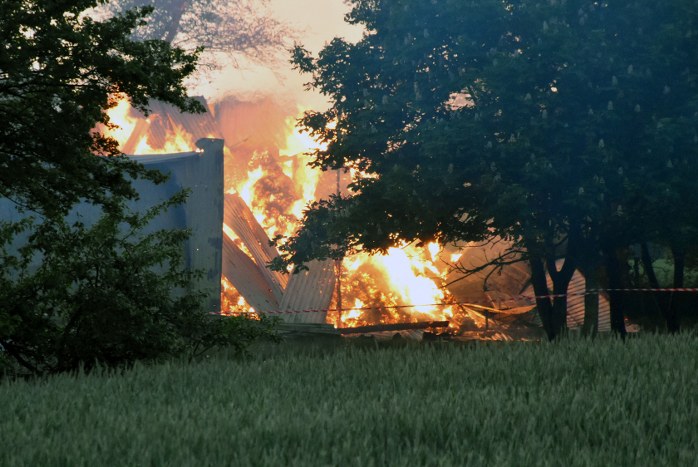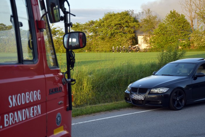 Ved ankomsten viste det sig at være en lade fyldt med halm der var ild i.
