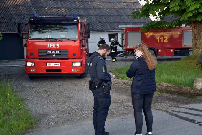 Brandmandskab fra stationen i Jels blev straks afsendt og der blev kaldt assistance fra station Skodborg.