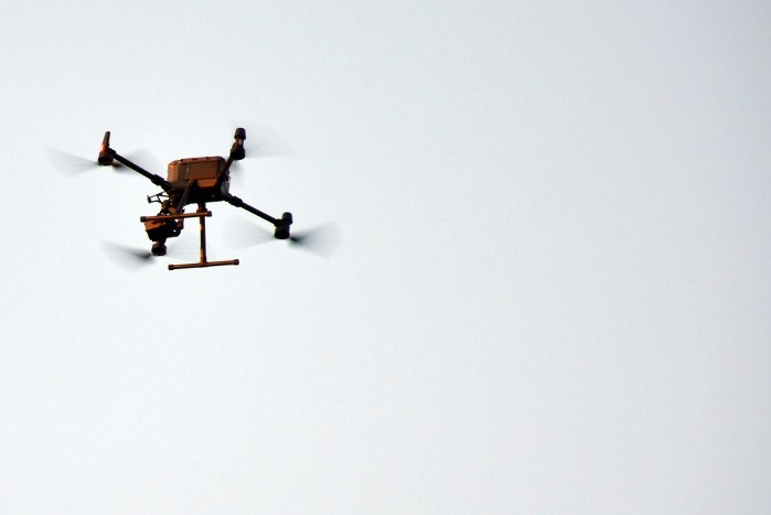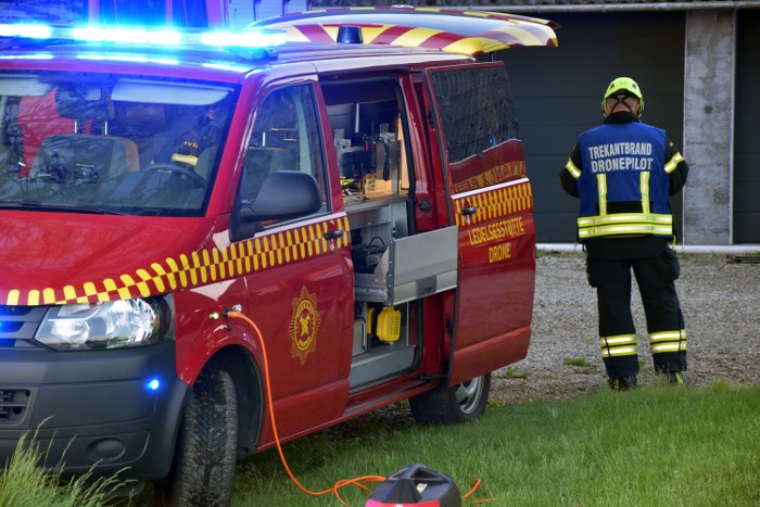 TrekantBrands droneberedskab fra Fredericia blev også tilkaldt og fik hurtigt en drone i luften.