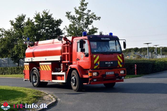 Da brandfolk fra Kolding på dette tidspunkt arbejdede i Middelfart blev der kun afsendt en tankvogn og klokken 17.03 blev så Lunderskov Brandvæsen kaldt til assistance.