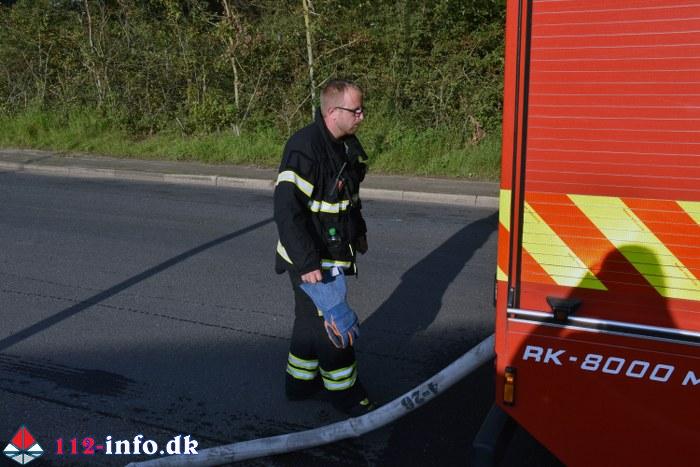 Der var opstået brand i et affaldsoplag hos firmaet Energnist og affaldet måtte grabbes ud og oversprøjtes med omkring 20.000 liter vand inden brandfolkene kunne slutte arbejdet.