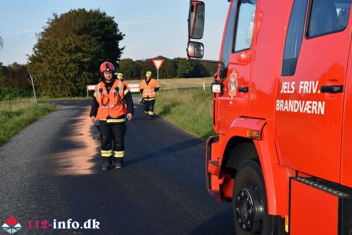 Alarmen gik hos Jels frivillige Brandværn, fredag klokken 17.18 og lød på Mindre forurening/ mindre spild.