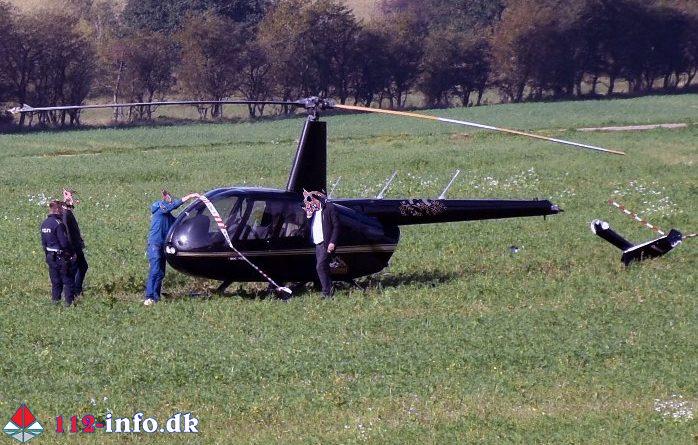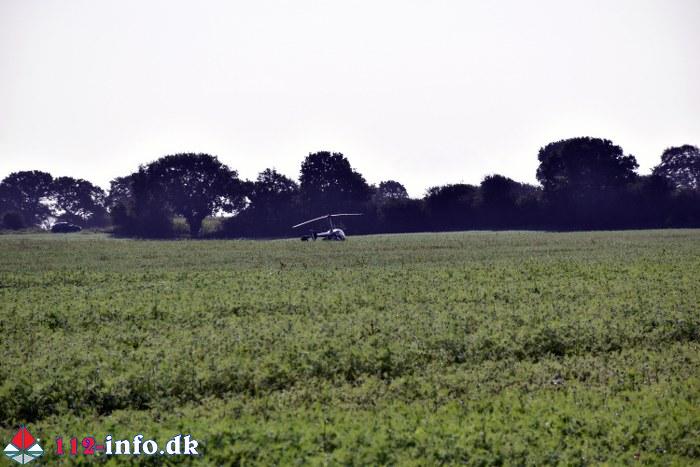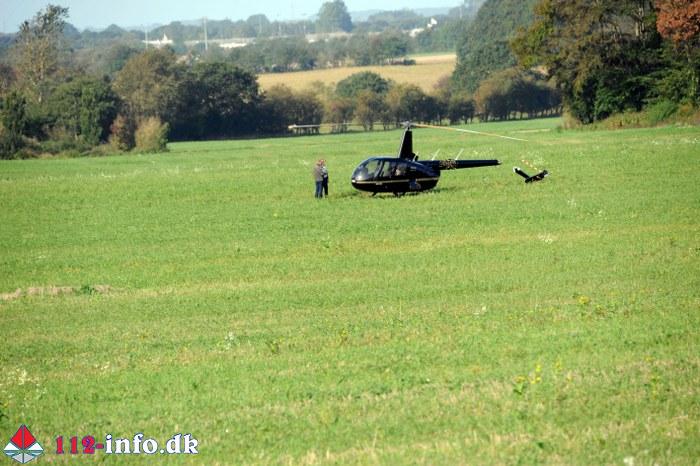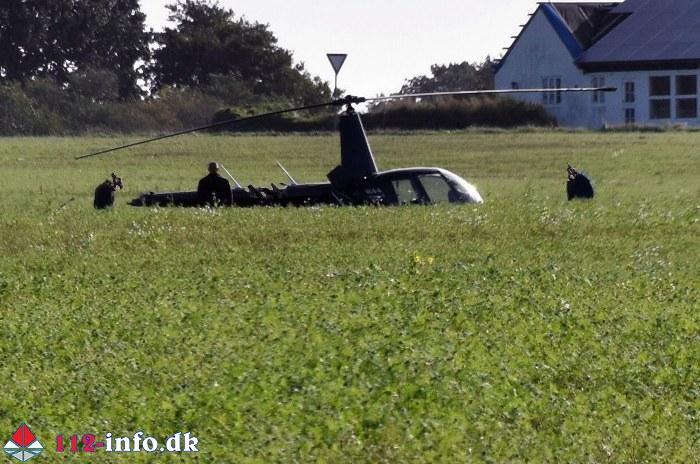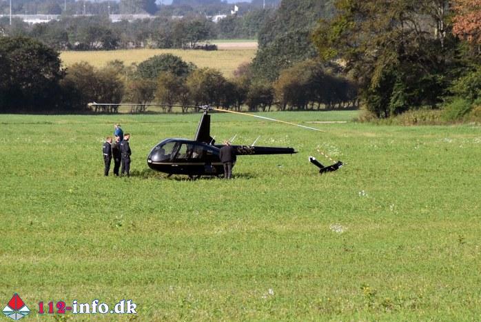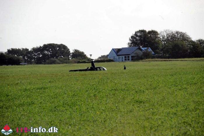 En mindre helikopter fik under flyvning problemer med den bagerste rotor og måtte lande et par hundrede meter inde på en mark nær Riglandsegvej ved Vamdrup.