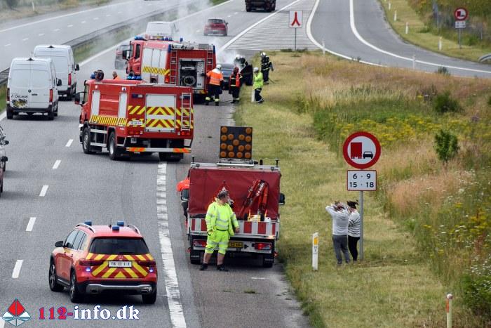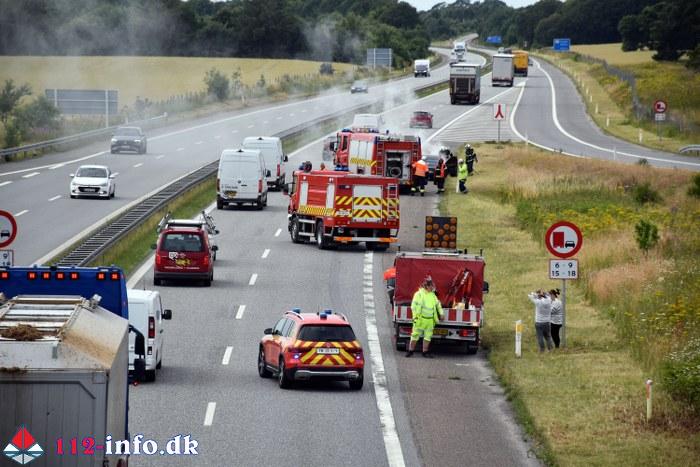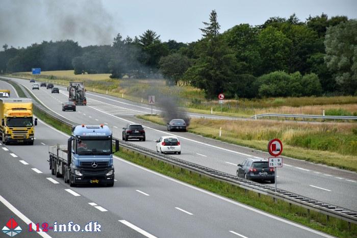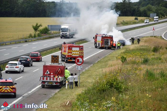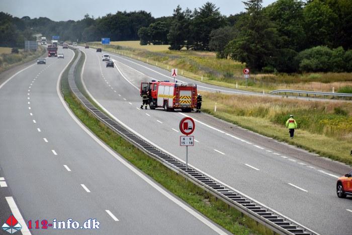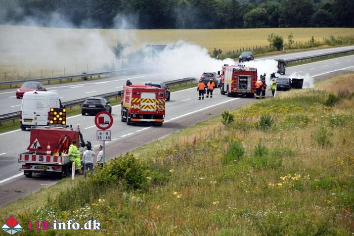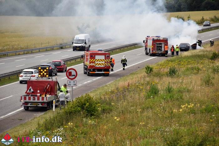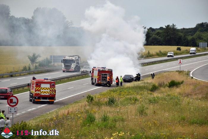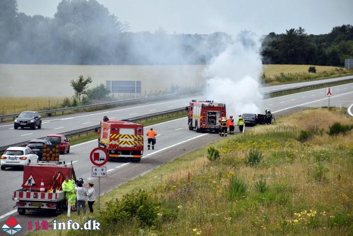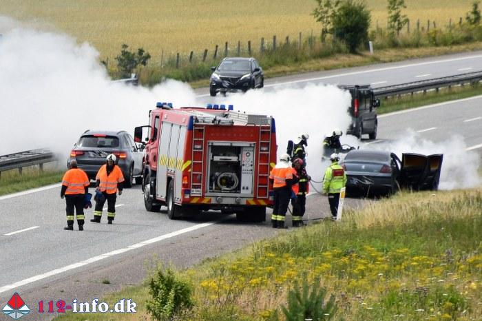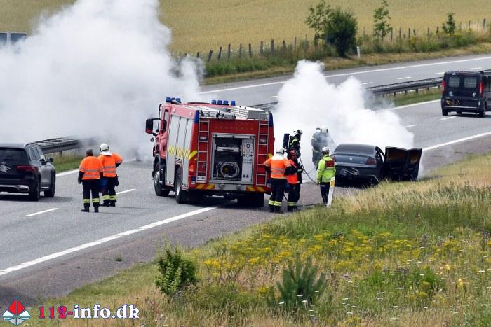 Føreren fik hurtigt standset bilen i nødsporet og alarmeret brandvæsenet.