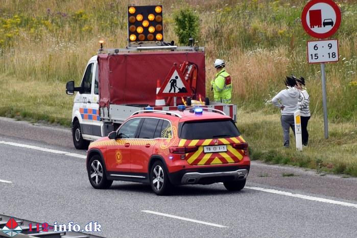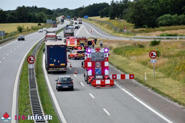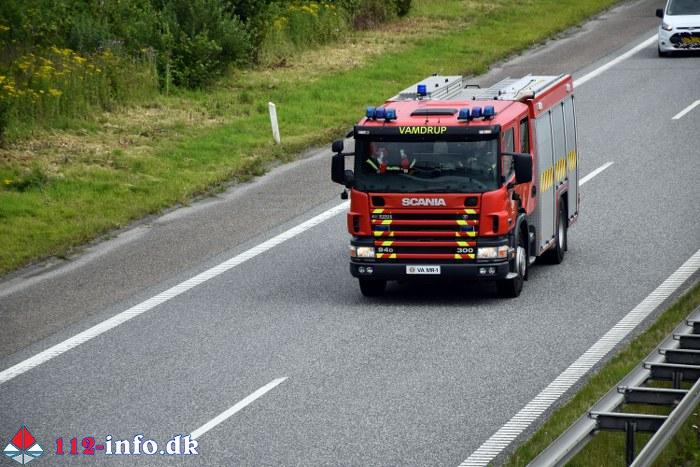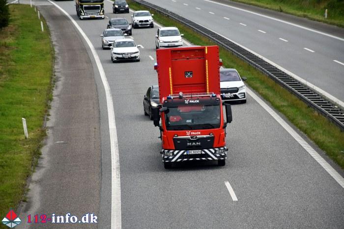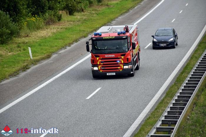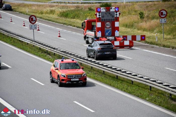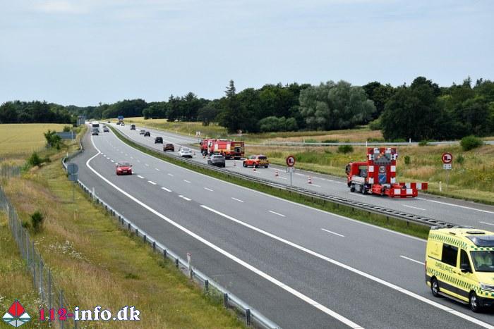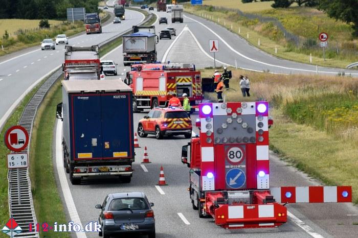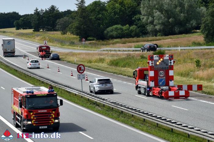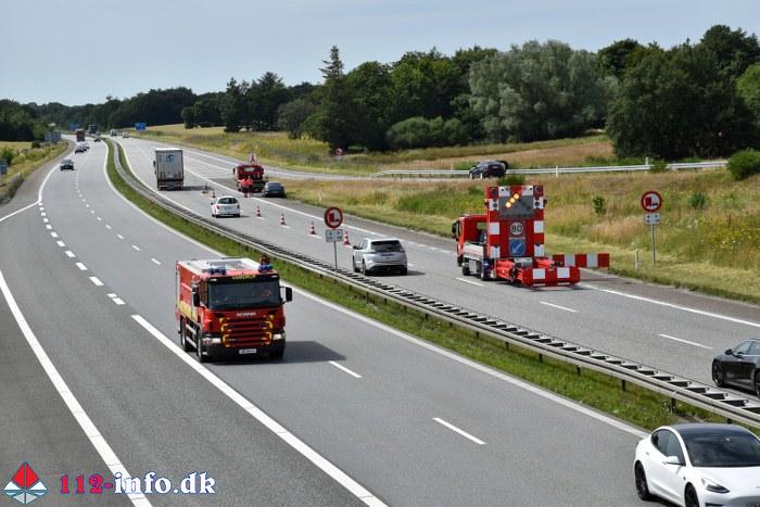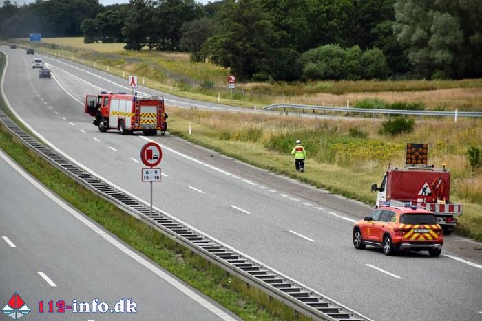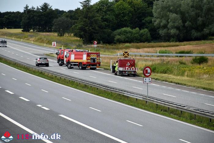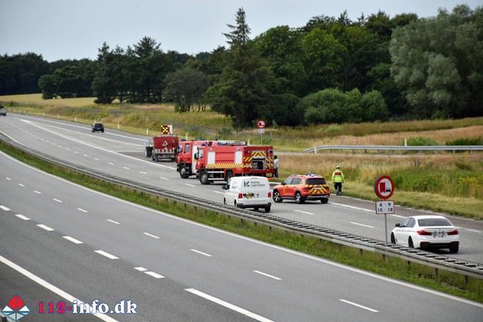 9. Jul. 2024 – Bilbrand På Motorvejen Ved Vejen.