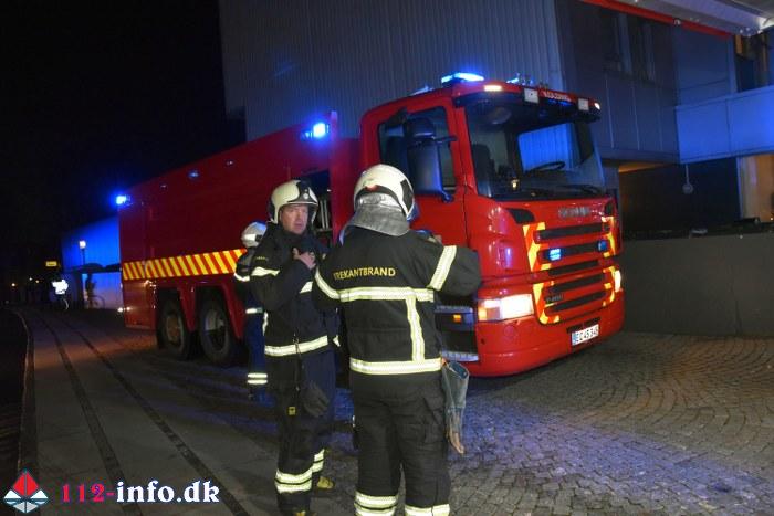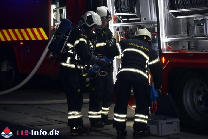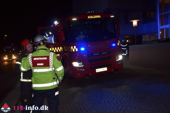 Ved den store øvelse der foregik i og omkring den store bygning deltog mandskab fra stationerne i Kolding, Vamdrup, Tyrstrup samt Fredericia.