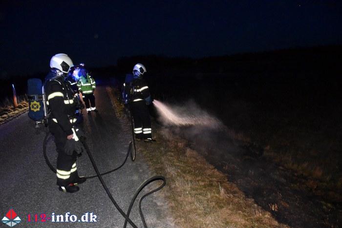 De friske brandmænd m/k måtte en tur til Langrejsvej i Andst hvor der var opstået brand i en grøft over en strækning på henved 60 meter.
