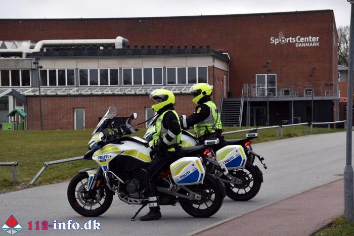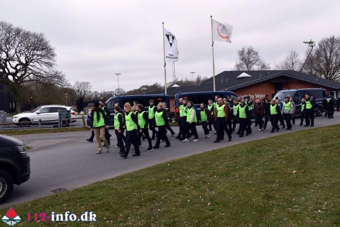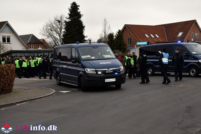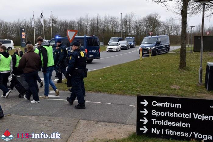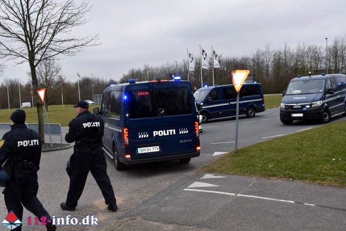 Store styrker af indsatsvogne, motorcykelbetjente, kampklædt Politi, droner og “demonstranter” deltog i øvelsen der startede og sluttede ved Vejen Idrætscenter.