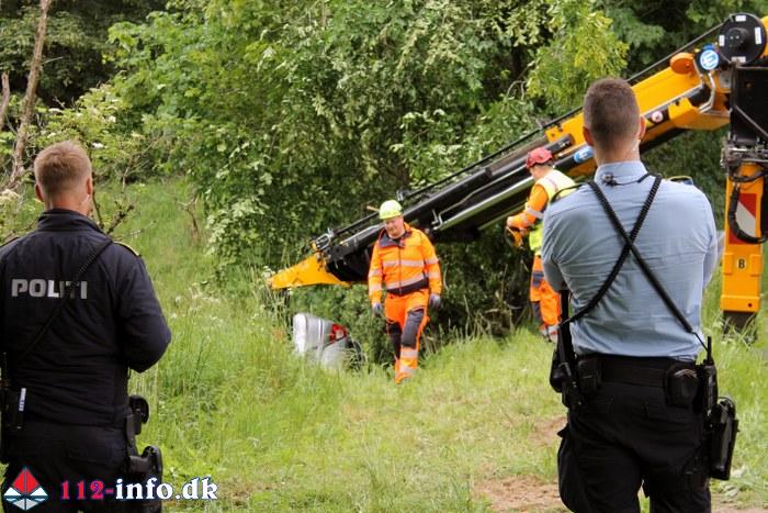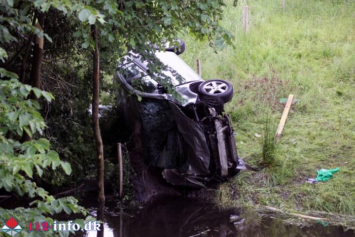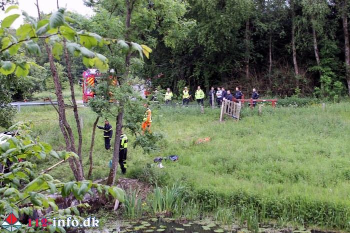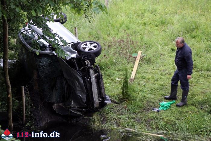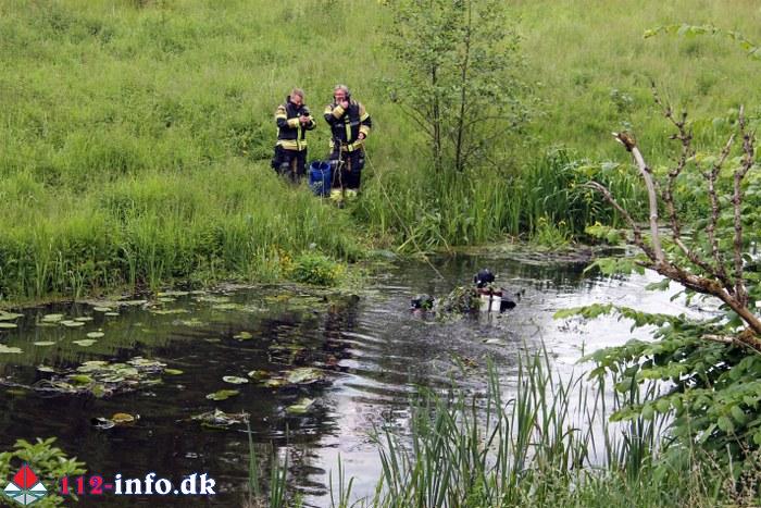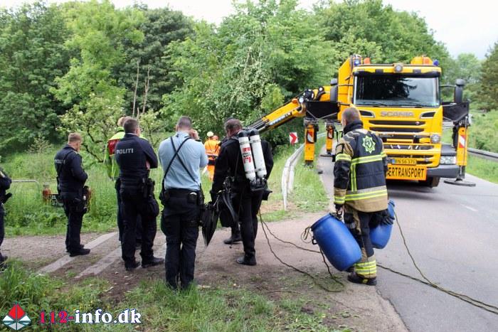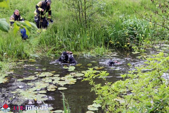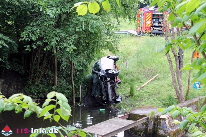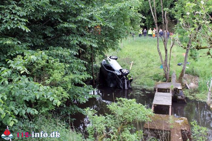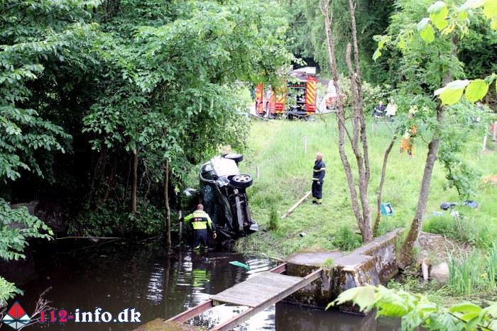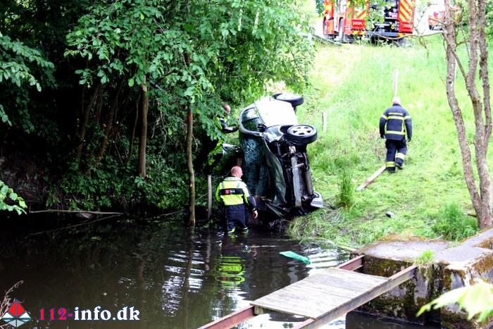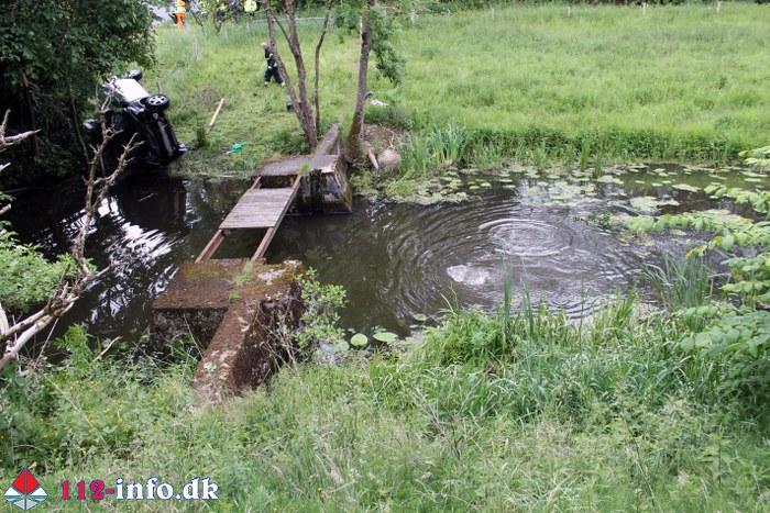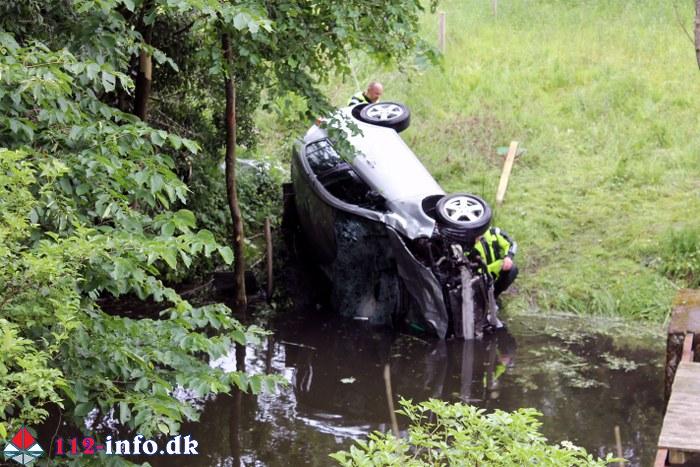 Politiet var hurtigt på stedet og ved ankomst fandt de en bil liggende i åen ved Dybvad Bro.