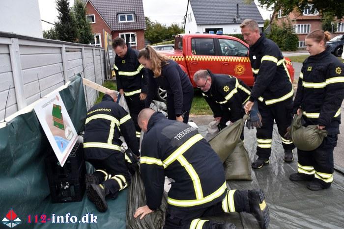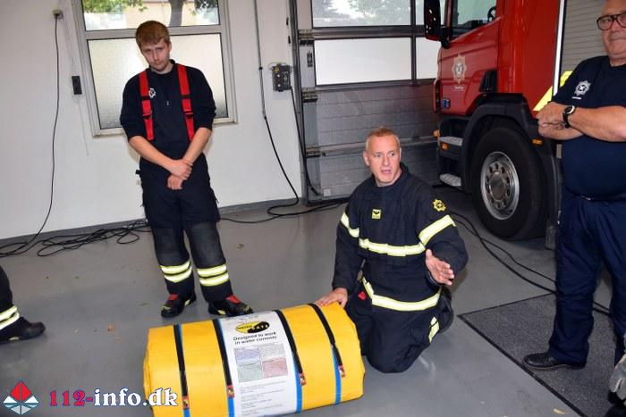Dygtige brandfolk fra Lunderskov Brandvæsen, nemlig Kim Hansen og Peder Carlsen, stod for instruktionen der blandt andet omfattede brugen af de såkaldte watertubes samt opbygning og brugen af sandsække.